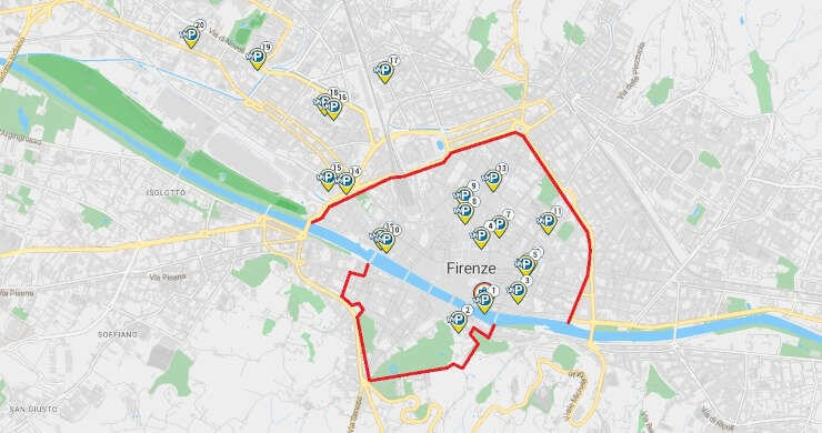The entire historic center area is regulated by a Limited Traffic Zone (ZTL). By booking a car park in the city center, you can access the ZTL and park without fines or inconveniences: the staff will arrange the Florence ZTL permit by communicating your license plate to the authorities.