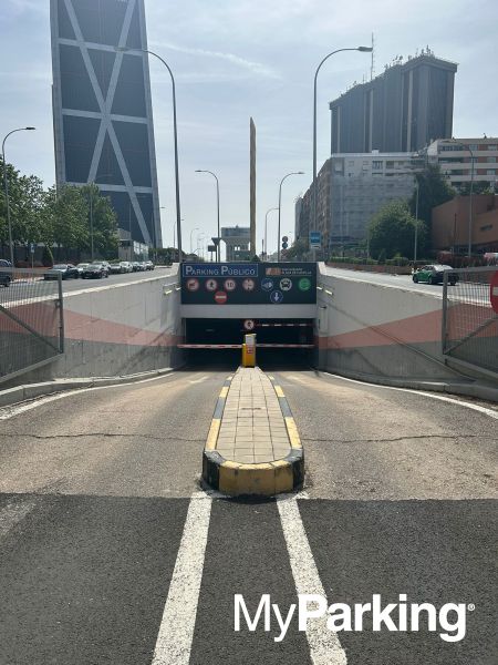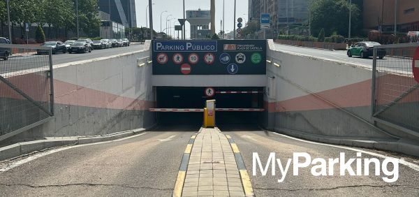 Public car park at Plaza de Castilla: 455 spaces spread across 3 levels, with wide bays. Open and supervised 24 hours a day, 365 days a year. Accessible for people with reduced mobility (PRM). Maximum vehicle height: 1.90 m. 3 vehicle entrances and 2 pedestrian access points. Direct connection to the Plaza de Castilla Transport Interchange on level -2: metro lines 1, 9 and 10, EMT and intercity buses. Automatic payment machines and credit card accepted. Mobile coverage, lifts and escalators. Car wash service available on site. Ideal for parking at Plaza de Castilla and continuing by public transport, or for leaving your car during multi-day trips. Covered, supervised and open 24 hours a day, 365 days a year. Close to the Torres Kio, the Cuatro Torres, the Law Courts and within easy reach of the Bernabéu stadium. The perfect option if you need to catch a high-speed AVE train at Chamartín Station, just 10 minutes on foot or one metro stop away.
